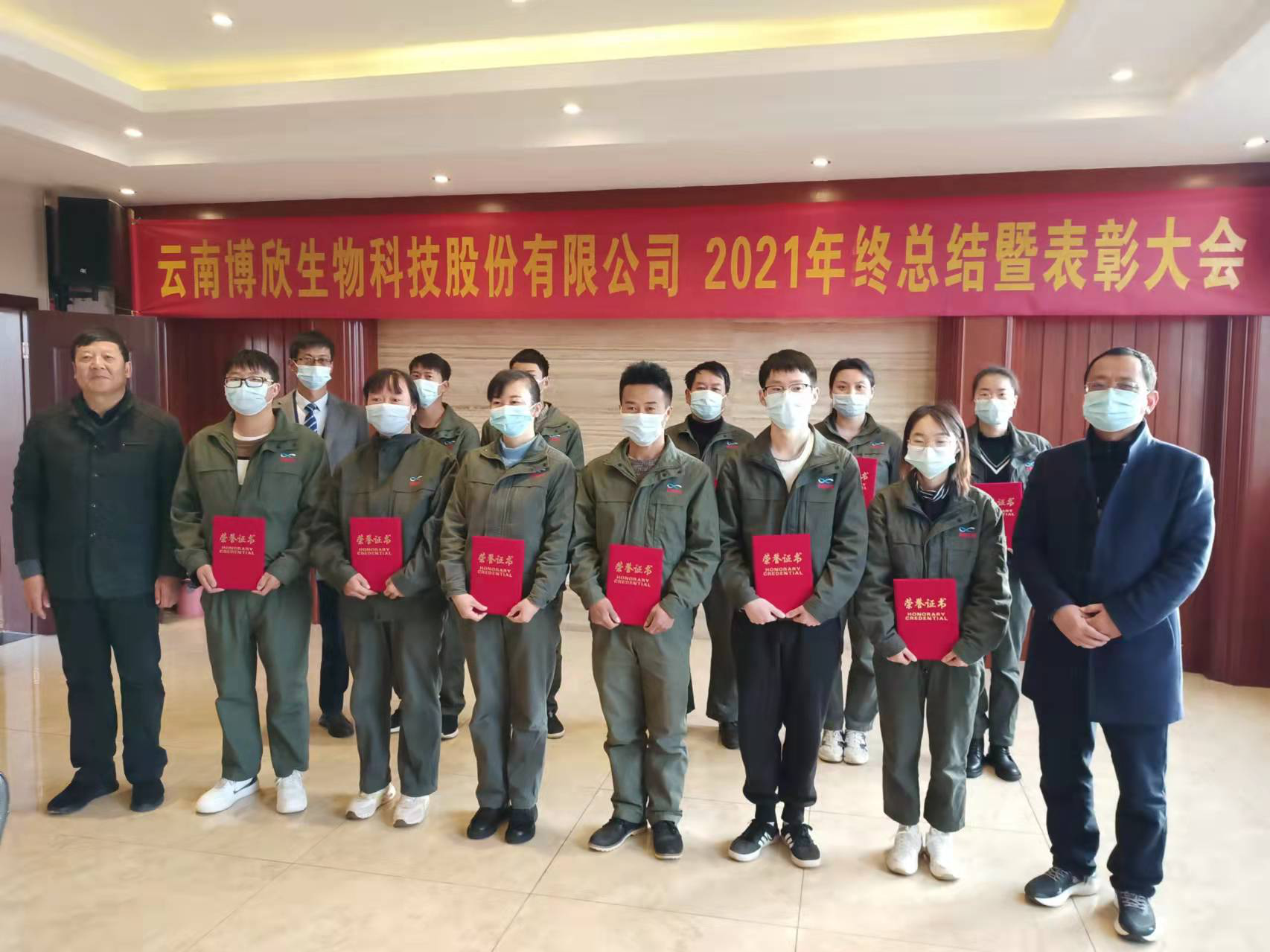 云南博欣生物科技股份有限公司召開(kāi)2021年終總結(jié)會(huì)暨表彰大會(huì)2022年01月21日,云南博欣生物科技股份有限公司召開(kāi)年終總結(jié)會(huì)暨表彰大會(huì),董事長(zhǎng)柏老六對(duì)公司未來(lái)發(fā)展目標(biāo)作重要講話,常務(wù)副總經(jīng)理仲林強(qiáng)作《2021年度工作總結(jié)暨2022年工作意見(jiàn)》報(bào)告,...